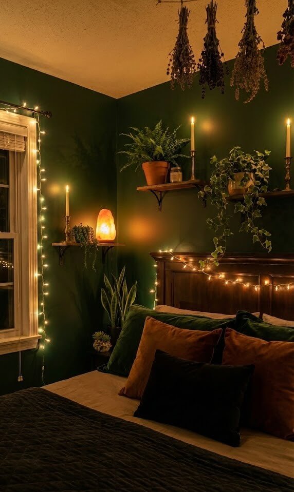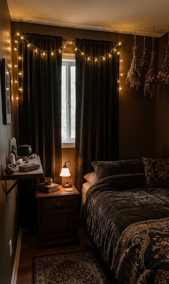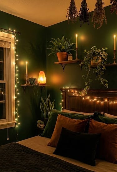 Lighting is everything in witchy interior design — it sets the mood, defines shadows, and adds mystical warmth.